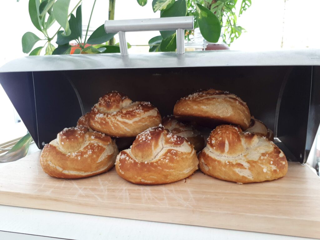 Had I been the baker, I would have been horribly punished – there is no space for sunlight in these homemade pretzels – the spaces are all filled with delicious substance 🙂Blick auf Altenriet, rechts die damalige Burgruine Neuenriet auf der Kieserschen Forstkarte (um 1685) Von Andreas Kieser – Landesarchiv Baden-WürttembergDas Wappen von Altenriet – wenn man’s bedenkt: durch die dargestellten Brezeln würde die Sonne auch nur zwei Mal scheinen… scheint schon schwierig zu sein, so eine Brezel erfolgreich hinzubekommen…