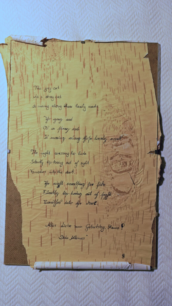 Zwei Gedichte von Carmen Sautter Two poems by Carmen Sautter The gray cat The gray cat, as a stray cat, is moving along those lonely roads. The night caressing her hide, Silently tip-toeing out of sight, Vanishes into the dark. Übersetzung: Die graue Katze, Eine Streunerin, Bewegt sich die einsamen Strassen entlang. Lautlos schleicht sie ausser Sicht, verschmilzt mit der Dunkelheit, während die Nacht ihr Fell liebkost. Mungomaki Der Mungomaki mäkelt meistens, Mag der Mango süsses Mark Mauschelt munter in Mangroven, Schläft am liebsten auch am Tag. Translation: The mongoose lemur often moans, Savours saccharine mango marrow, Potters about in the mangrove tangle Awakens when the darkness falls. (alternative ending, substitute the last two lines with these four). Conducts its funny business dealings In mangrove forest labyrinths Its preferred bed-time, one might guess, Are daylight hours, or anytime, in excess.