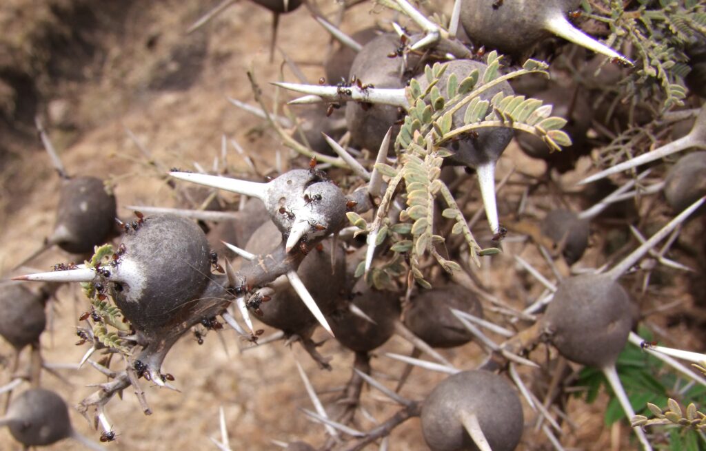 Very close: Domatia with ants. Vachellia drepanolobium. Dick Culbert from Gibsons, B.C., Canada – Acacia drepanolobium– Whistling Thorn, CC 表示 2.0, https://commons.wikimedia.org/w/index.php?curid=50052162による